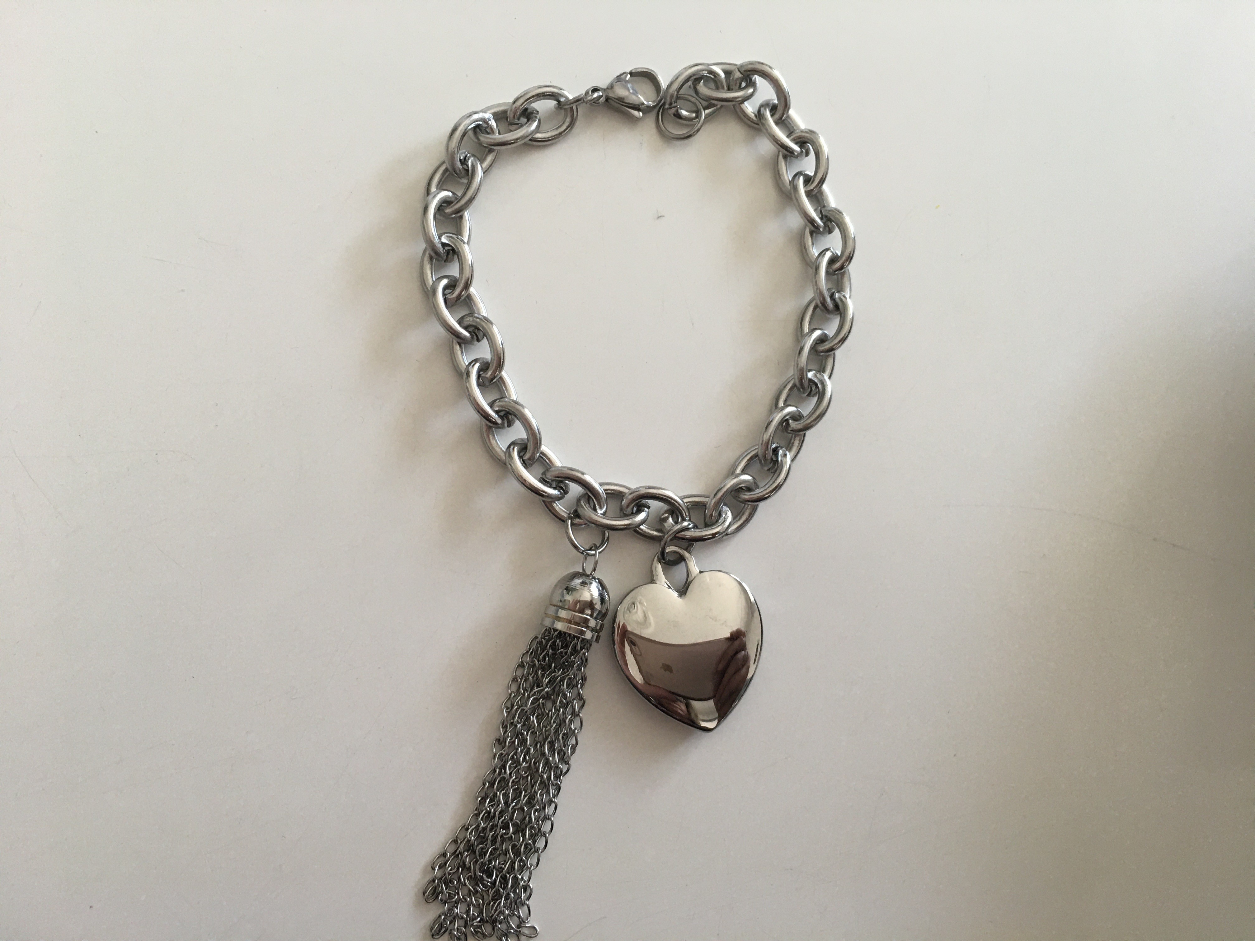 Bracelet coeur et breloques en acier inoxydable de couleur argent